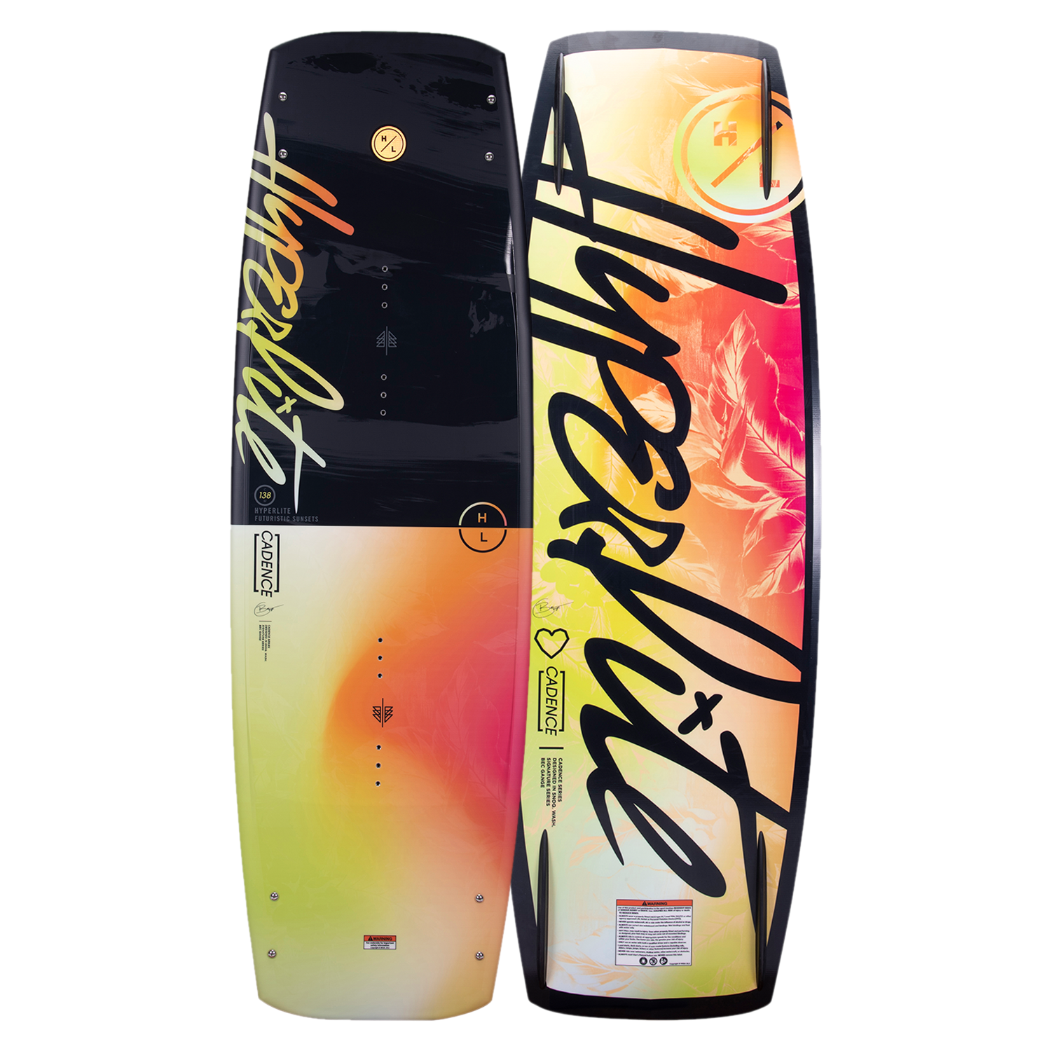 The Cadence series yields quick edge response and aggressive feel with massive pop off the wake shaped by Greg Nelson in conjunction with Bec Gange. The Cadence is a fast board incorporating a continuous rocker and slightly wider profile utilizing Hyperlite's Satin Flex for female athletes. The shape includes a subtle landing feature in the belly transitioning to dual concave tunnels exiting the tip & tail for an aggressive approach to the wake. The variable edge design is beveled between the stance platform for a forgiving feel sharpening at tip & tail for secure edging. Bec enjoys the explosive pop off the wake and effortless carving making it easy to link tricks back to back.