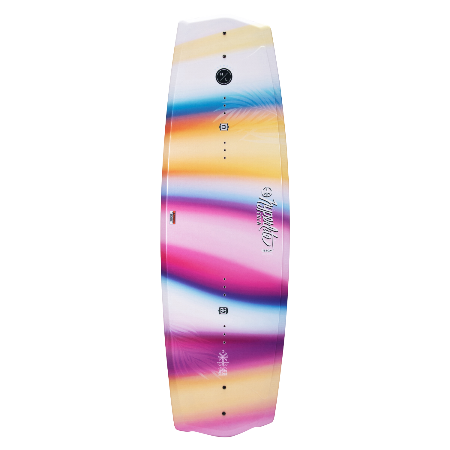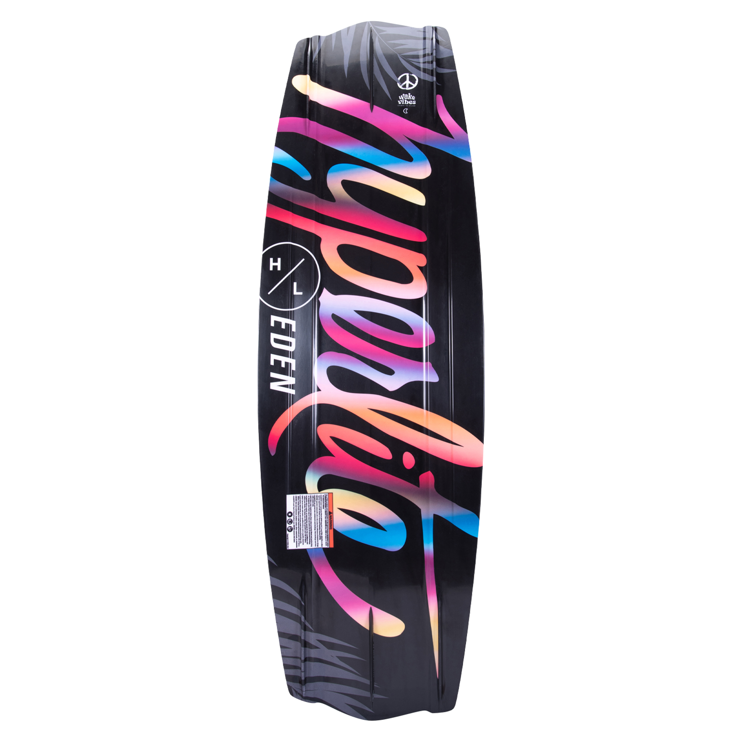 Creating a women's shape to take their skills to the next level was the goal behind the new Eden 2.0. Learning from other asymmetrical designs, we found that creating a shorter but more effective edge on a rider's toe-side made hard to learn wake jumps that much easier. This is because there is less rail to initiate when applying toe-side pressure. Once set, the smoother toe-side transition is then held by the Eden 2.0's thinner profile molded-in fin, creating less drag and a better release off the top of the wake. Subtle toe-side footbed risers were also added to help a rider create more leverage when pressure is applied. The longer, more traditional heel-side edge compliments this asymmetrical design by allowing the natural body position of a rider to generate stability and speed into the wake without a loss of pop due to reduced surface area. The Eden 2.0 has been tested and proven to be the best choice for a rider looking to master the fundamentals of wakeboarding.