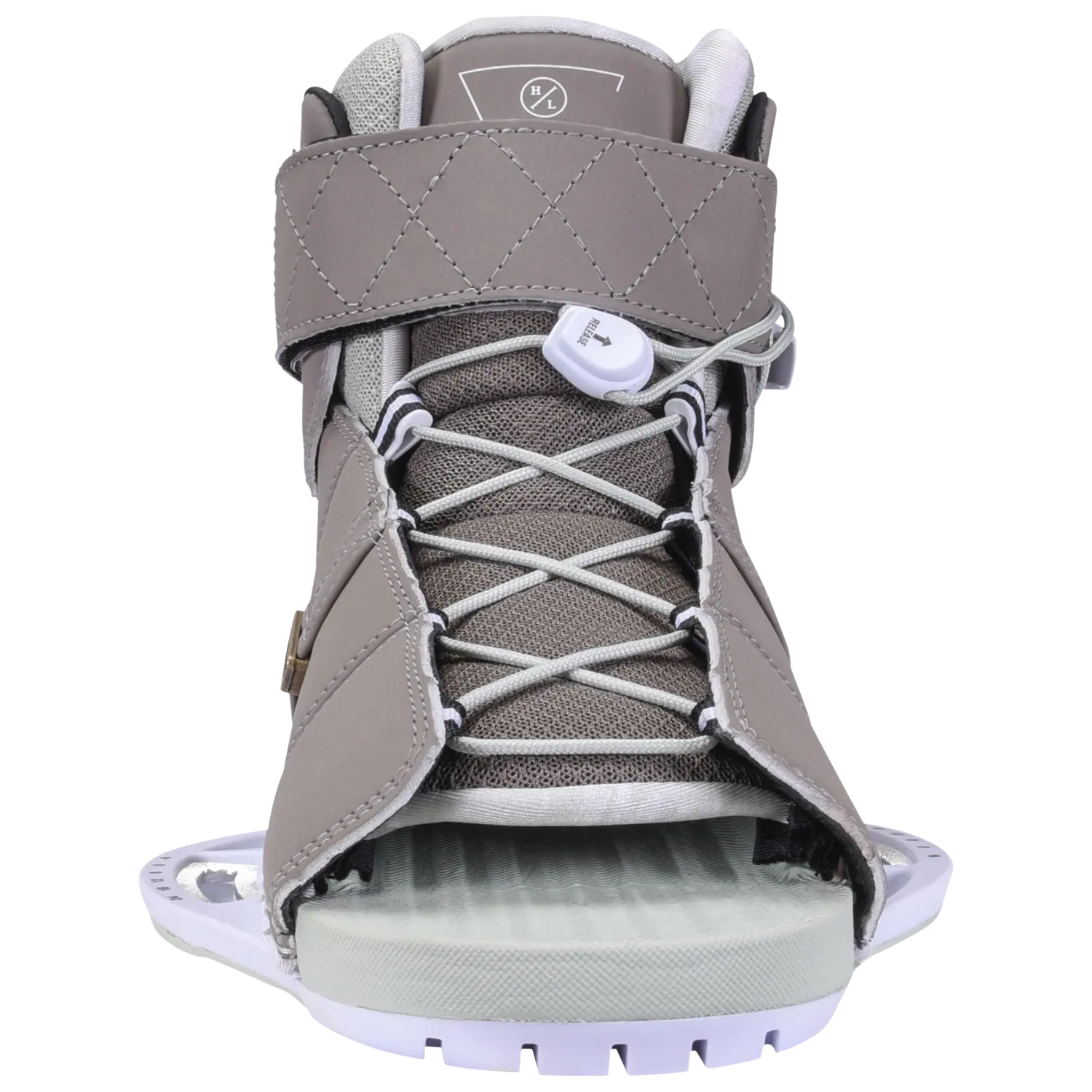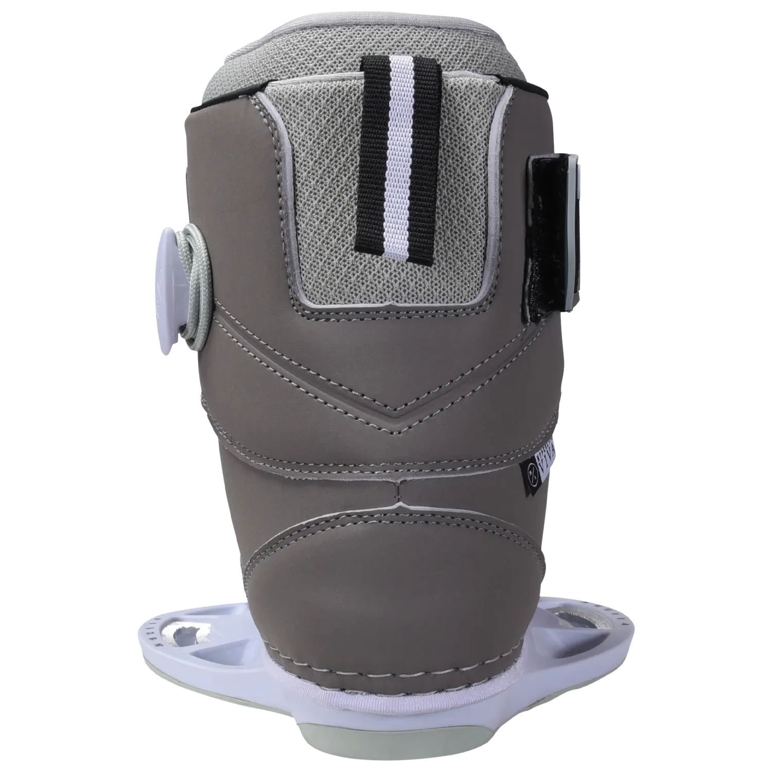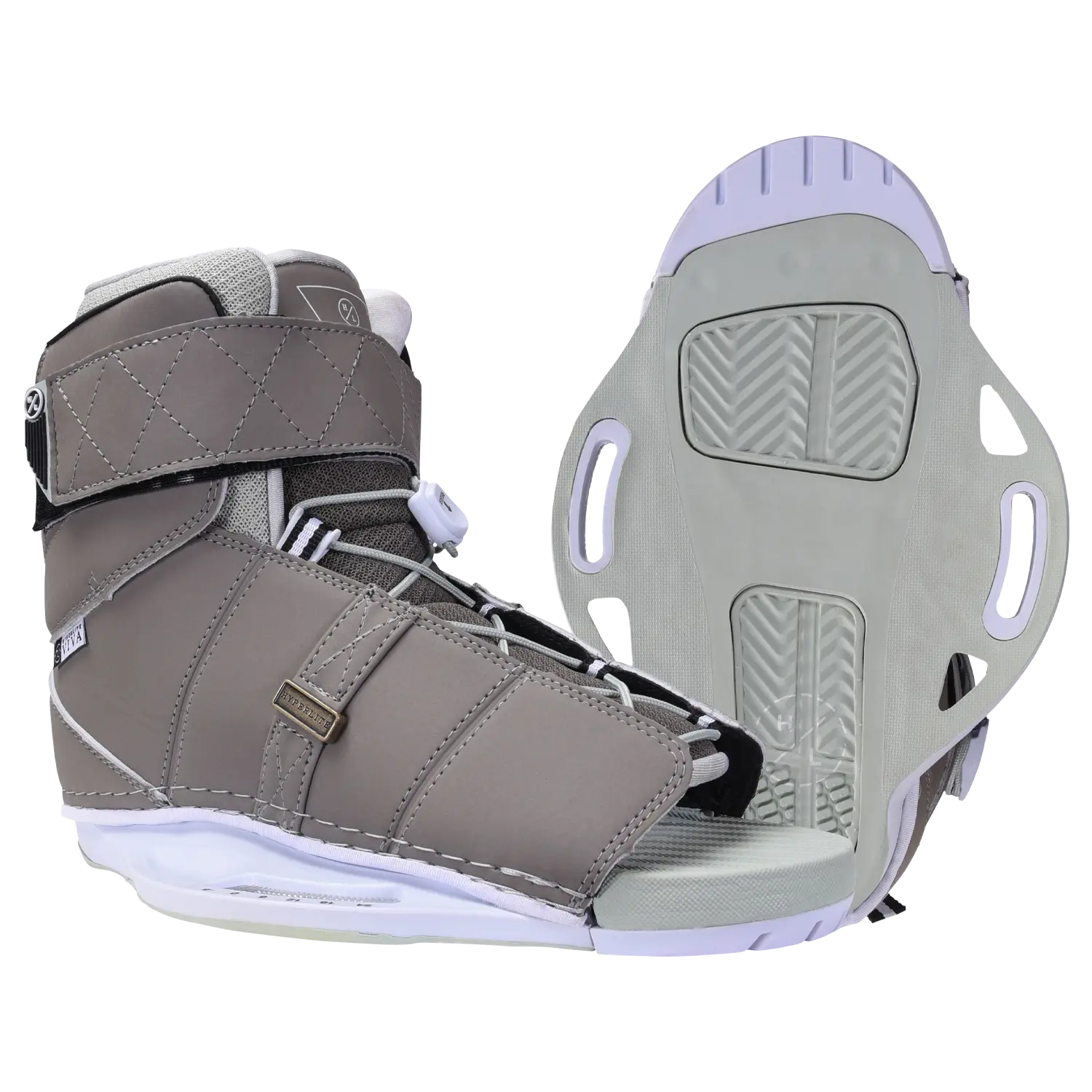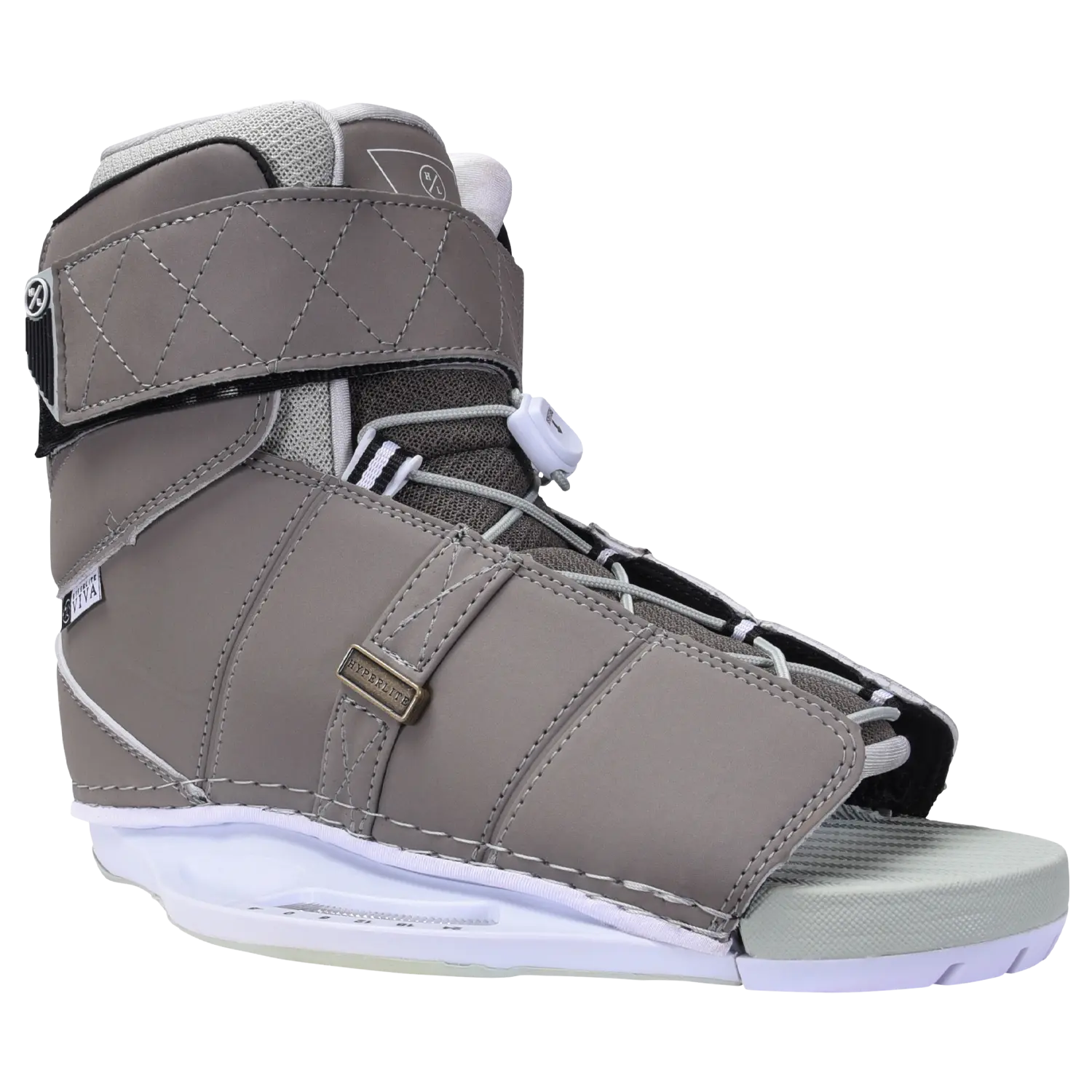 Ladies rejoice with the Viva and the customizable feel and support it delivers. Thanks to the quick cinch lace zone and the upper ankle Velcro Closure, you can dial this binding in to meet your needs while shredding the wake. Affix the Viva on any wakeboard with our 6in Universal Mounting System and feel free to share the binding with your friends as the open toe design accommodates multiple size feet.
