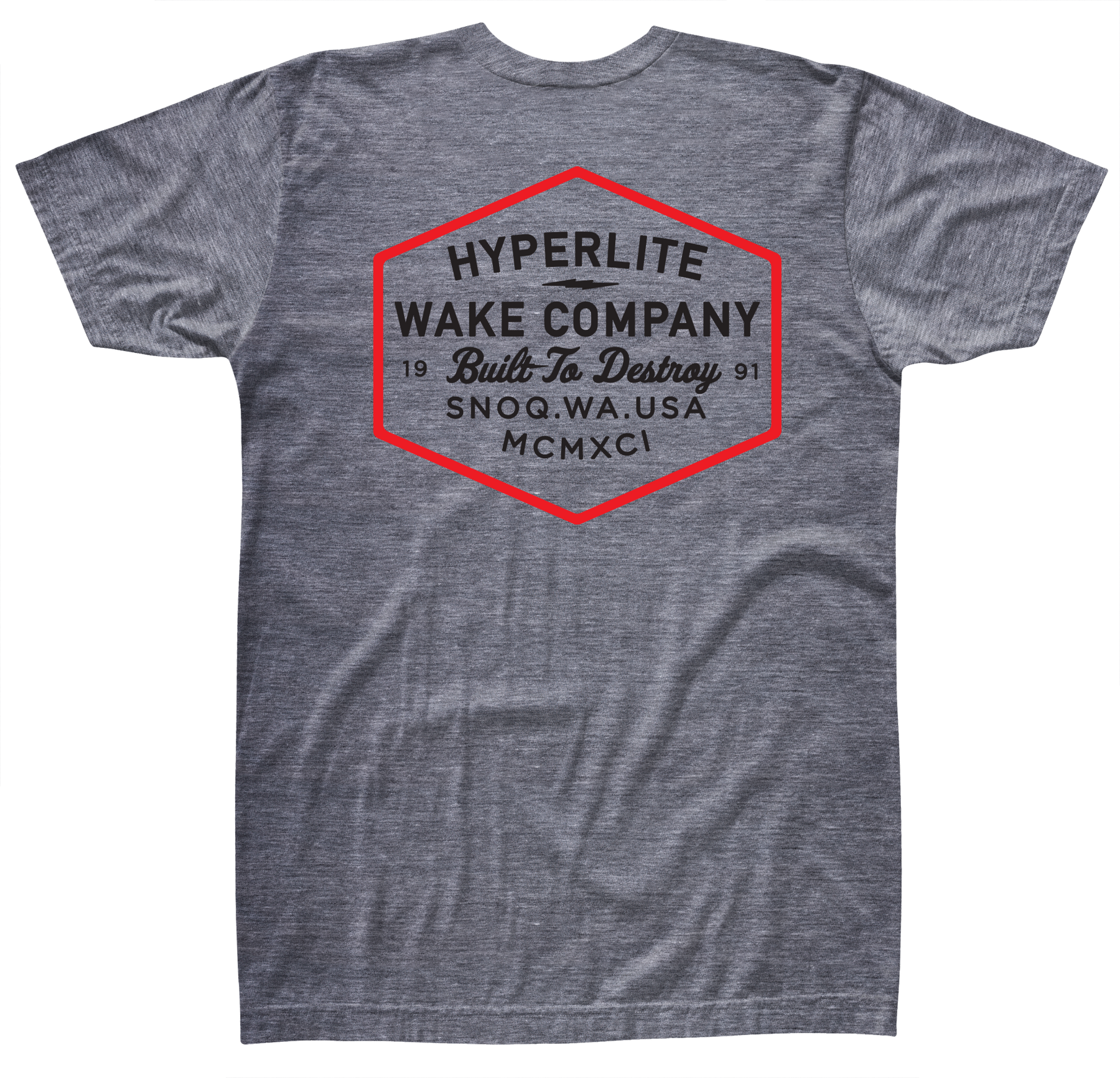 Classic heather grey cotton featuring front and back logo hits will impress not only you, but the crew as well. Rock that Hyperlite vibe all summer long in the comfy Shield Tee. Premium Triblend cotton/poly mix provide that light feel for hot days on or off the lake.