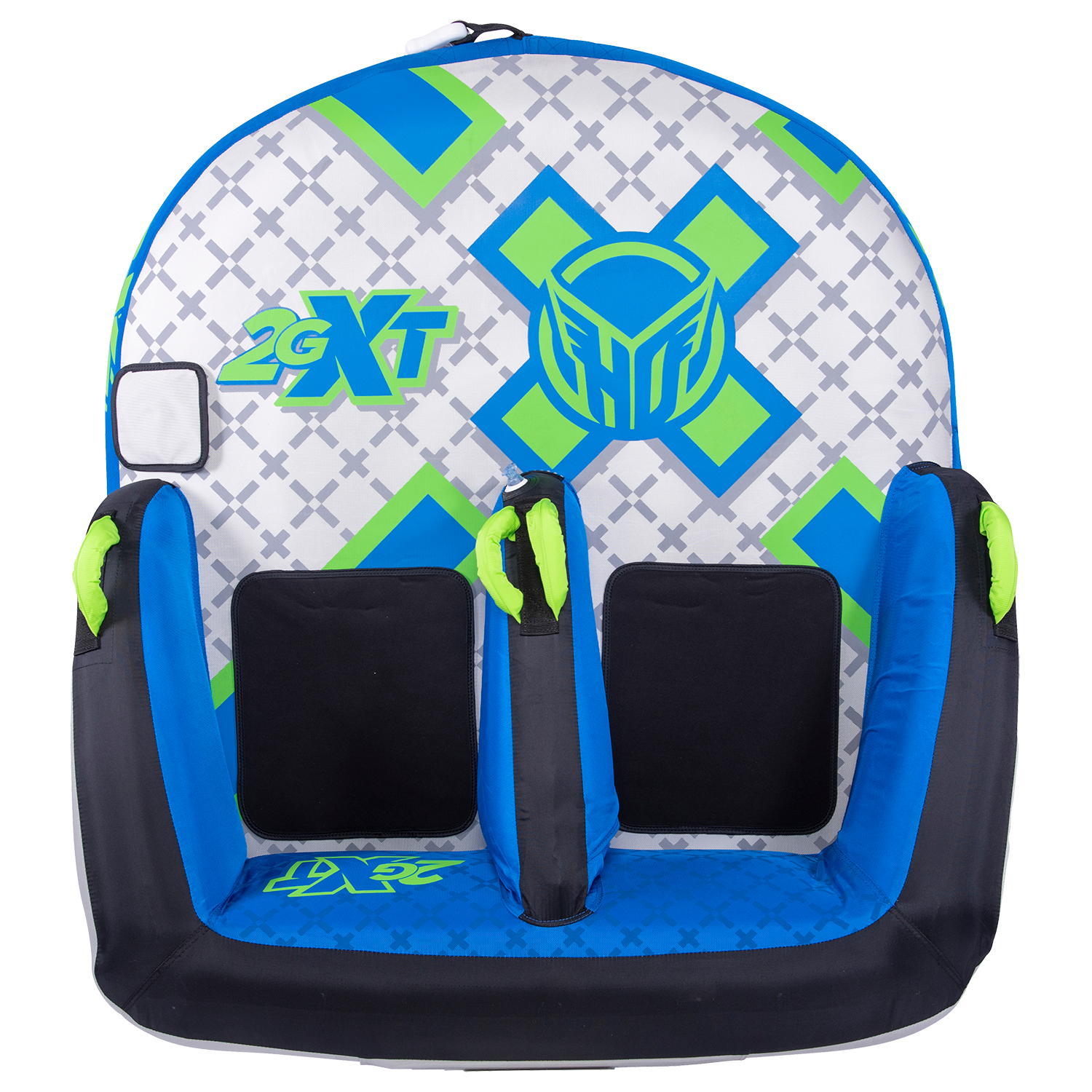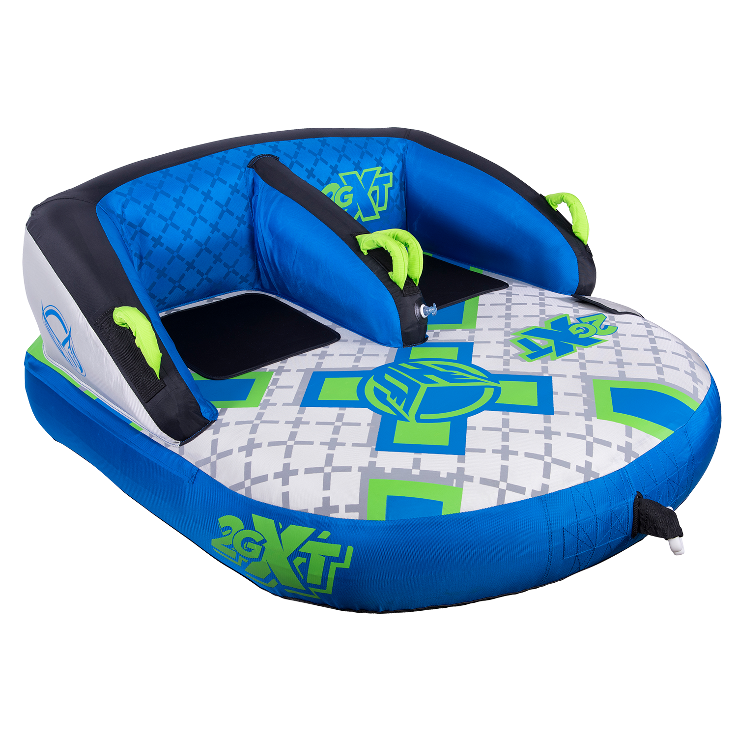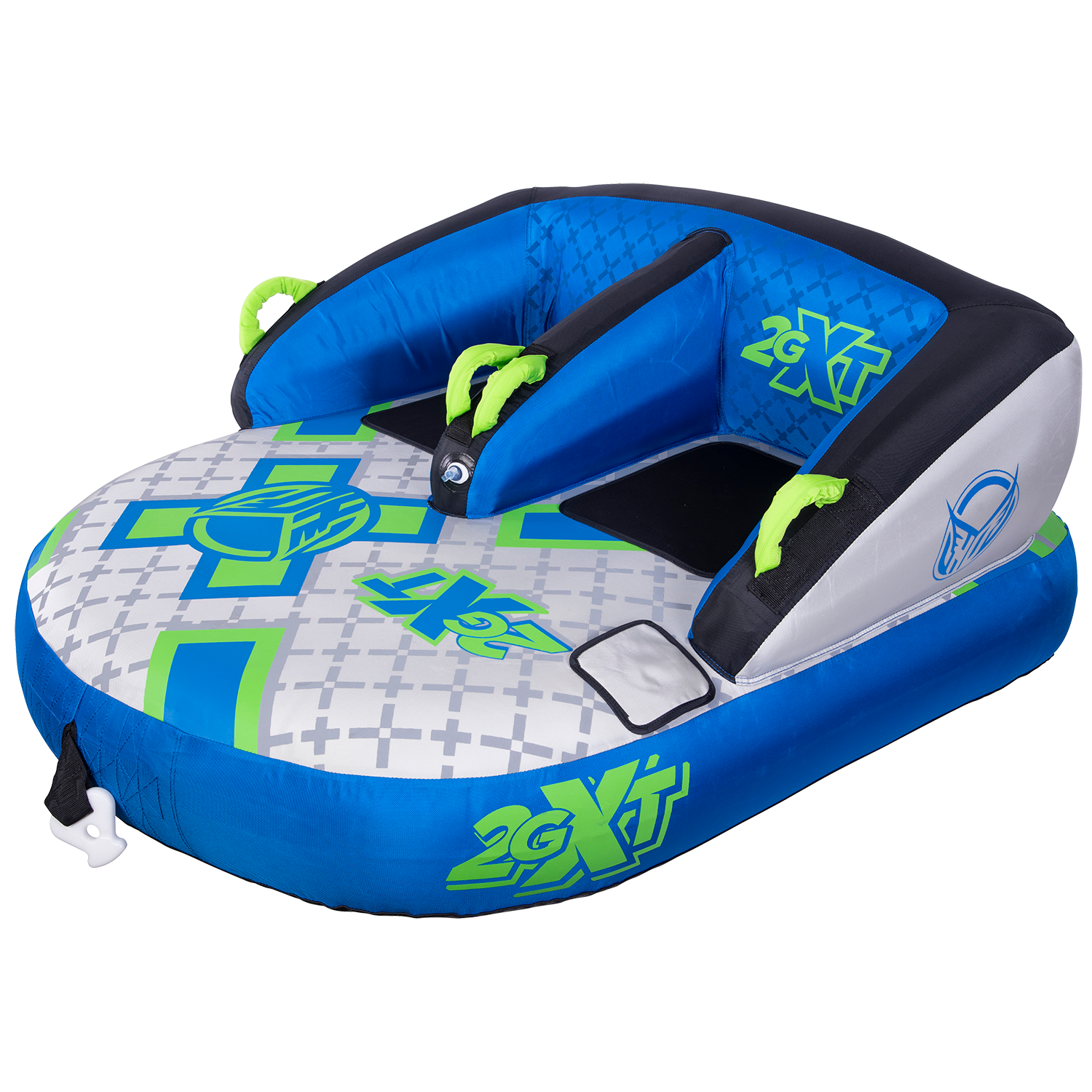 The name says it all –2GXT. XT stands for eXtra Tough. We spared no expense with this towable tube and we stand behind it with our INDUSTRY FIRST 3 YEAR LIMITED WARRANTY. Our customers asked for an “EXTRA TOUGH” version of our best seller 2G and we answered by building the XT with the thickest and toughest materials money can buy. Grab a friends and sit down in the ergonomic, lounge style seats! Made from only the finest materials and backed by our 3 year limited warranty, the 2GXT will keep you where you want to be…on the water! One, two or three rider towable
