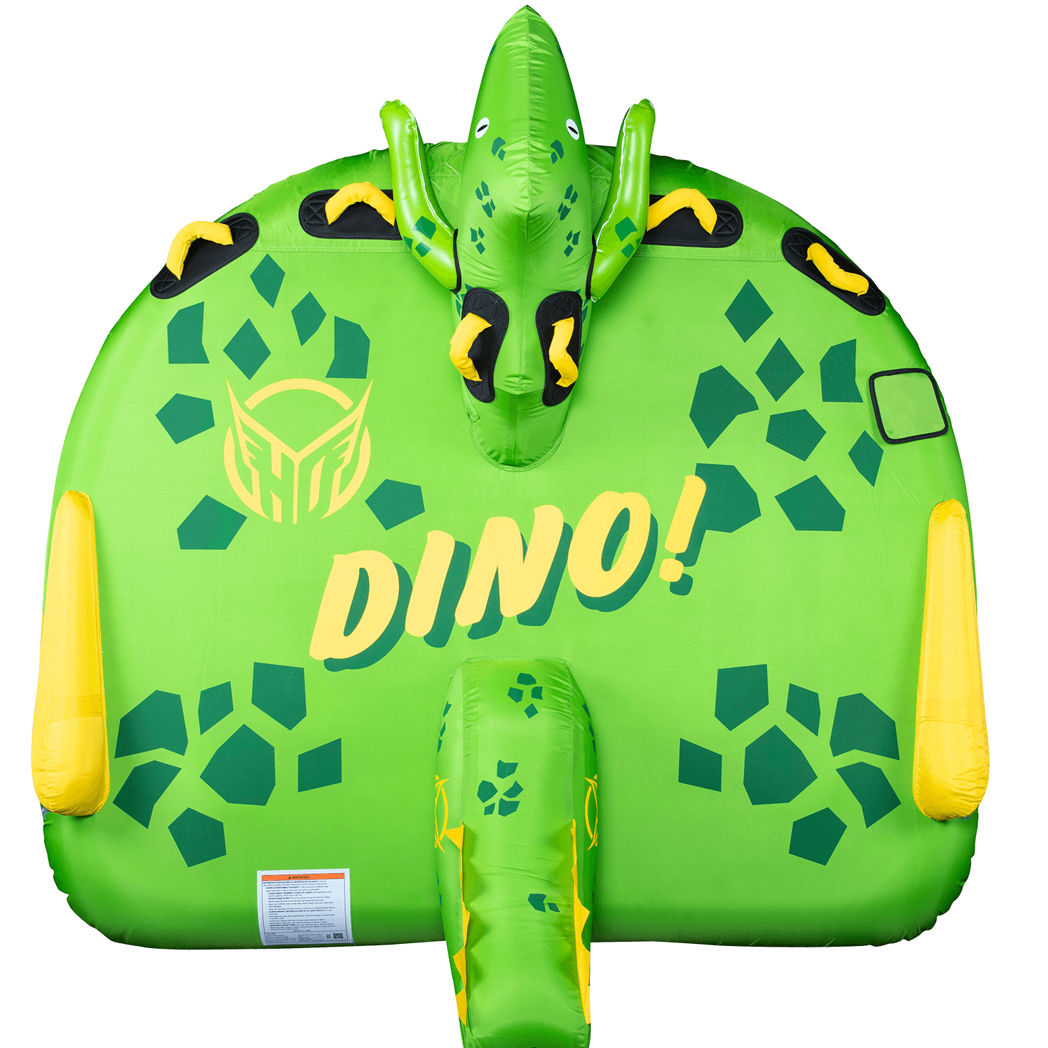 The Dino is a 3 rider towable tube built for fun days on the lake. The Dino can handle up to 3 riders but it can be ridden by 1, 2 or 3. The center rider sits on the deck of the tube while the outside riders lay in the prone position. Built with only the finest materials and guaranteed with our 1 year warranty, this tube will keep you where you want to be…on the water.
