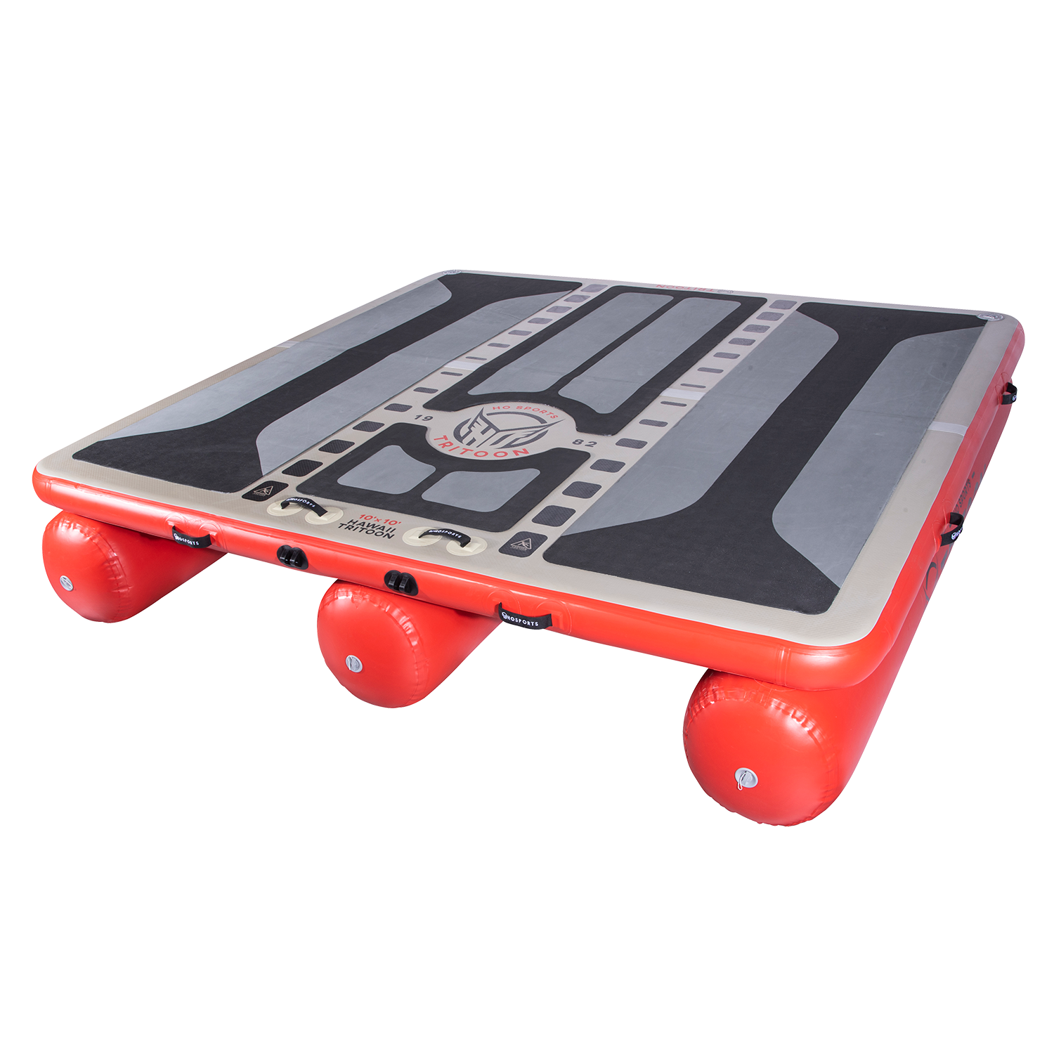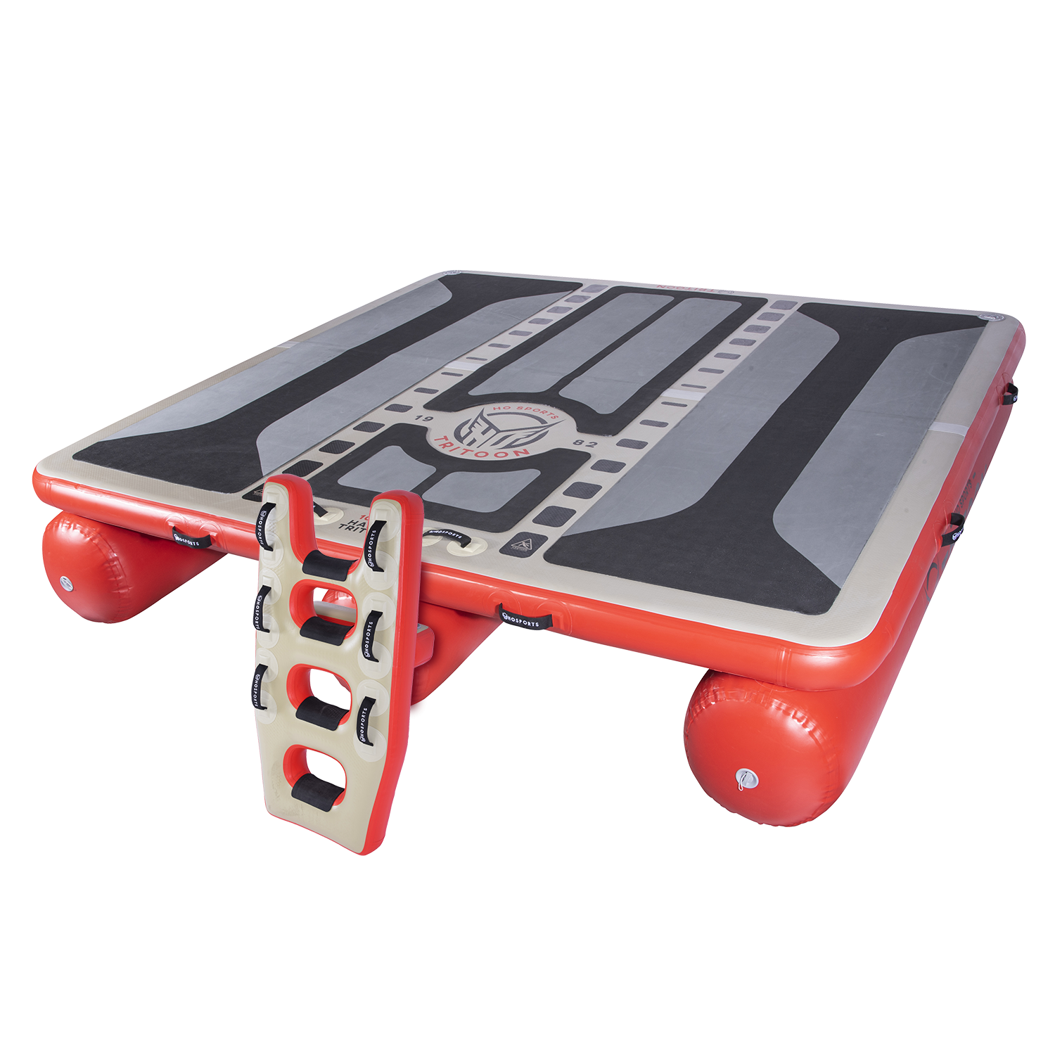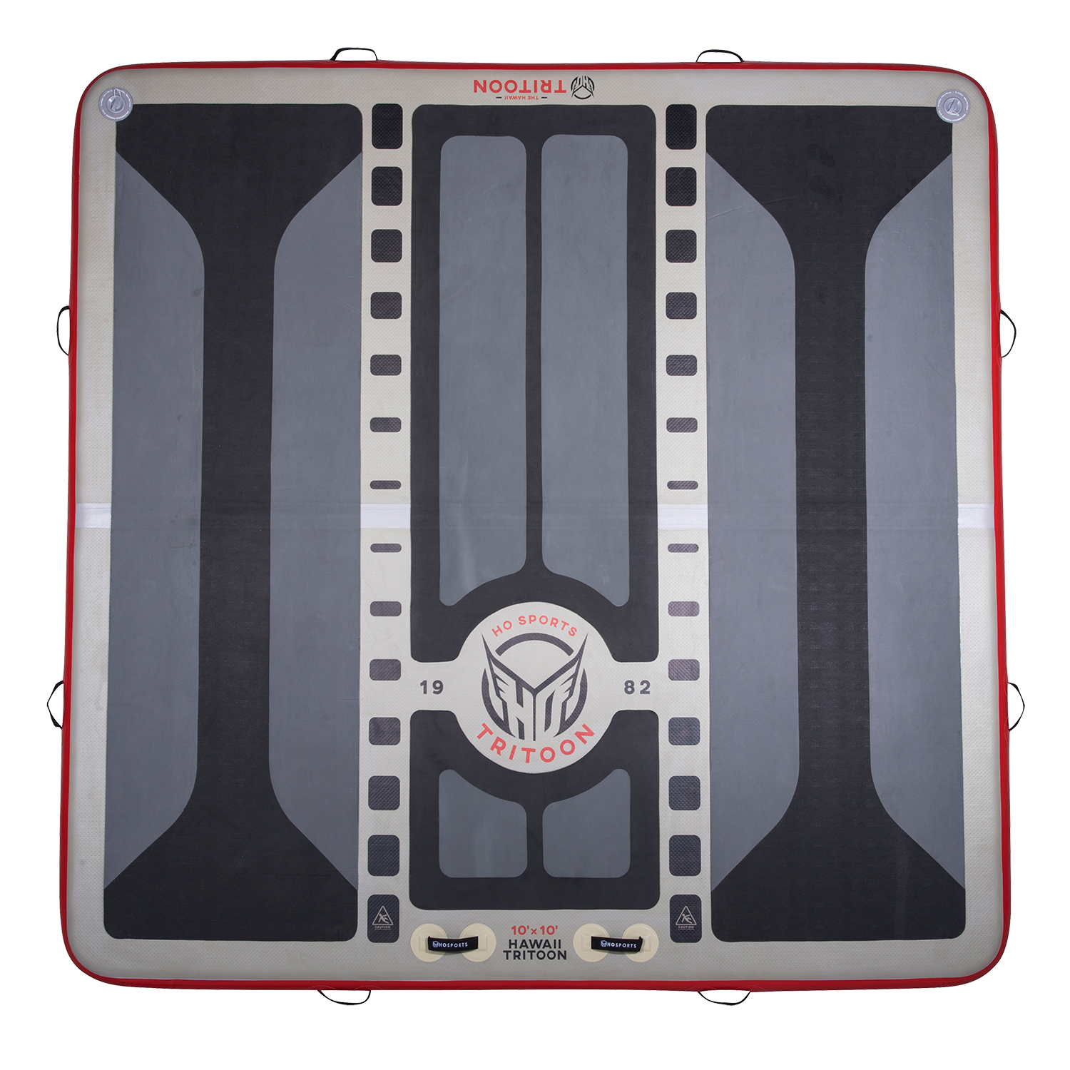 Inflated height: 24in(61cm) 10’ x 10’ x 6” deck. The Hawaii Tritoon is a 10’ x 10’, 24in high Inflatable dock that is elevated by 3 inflatable Pontoons so you’ll stay high and dry. It performs equally great as a dock, lounge or swim platform, ensuring endless fun for the entire family. The deck of the Tritoon is built with our 6” Thick, Durable, Welded Dropstitch Construction, so it’s seamless, stable and rigid at proper PSI. This heavy-duty material can withstand being bumped, scraped or dropped with a low risk of damage. The Hawaii Tritoon features a soft Marine grade EVA Deck Pad with a non-slip traction surface. You will have plenty of room for chairs, coolers, friends and more on it’s 100 square foot deck. The EVA Deck Pads are strategically placed for tight folding and easy packing and transport using the included carry-tote. Decked out with a Swim Ladder for easy reboarding for all ages and dual layer padded carry handles, it’s easy to use and easier to manage. Equipped with plenty of stainless D-rings that make it easy to link to boats, docks, anchors and more. Also included, the Tritoon comes with an Electric Pump with Automatic PSI gauge, making it simple to inflate without endless hand-pumping. Our PVC repair kit is there for peace of mind, but we both know you’ll probably never need it. Inflate your lake life for the whole family with the Hawaii Tritoon Inflatable dock by HO Sports. • Three Inflatable Reinforced PVC Pontoons: Stay dry and elevated • Electric Pump included for easy inflation and deflation • Strategically designed EVA placement for tight and easy packing • Marine EVA Deck Pad - Non Slip Traction Surface • 15cm(6in) thick Welded Dropstitch Construction • Swim Ladder included: dimensions (inflated) 48” x 24” x 6” thick • Dual Layer Neoprene Padded Carry Handles • 3.8mm Stainless D-Rings • Carry tote included