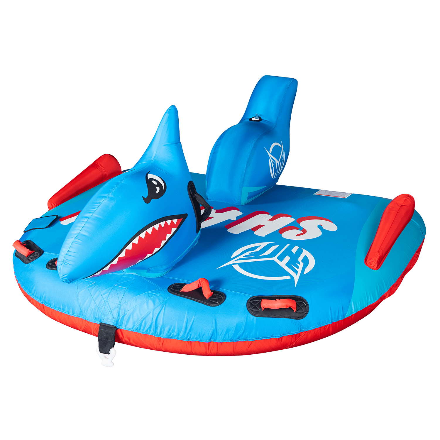 The Shark is a 3 rider towable tube built for fun days on the lake. The Shark can handle up to 3 riders but it can be ridden by 1, 2 or 3. The center rider sits on the deck of the tube while the outside riders lay in the prone position. Built with only the finest materials and guaranteed with our 1 year warranty, this tube will keep you where you want to be…on the water.